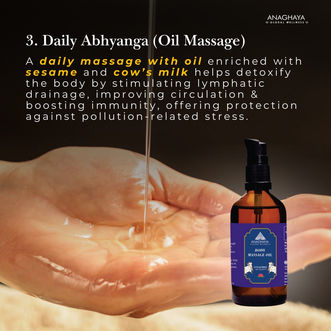 Anaghaya Global Wellness Body Massage Oil, a luxurious & all-natural oil that offers a multitude of benefits to help you achieve your health & beauty goals. Our specially formulated oil increases body mass & bone density, while clarifying skin tone & reducing blemishes, resulting in smooth, glowing, & healthy skin.