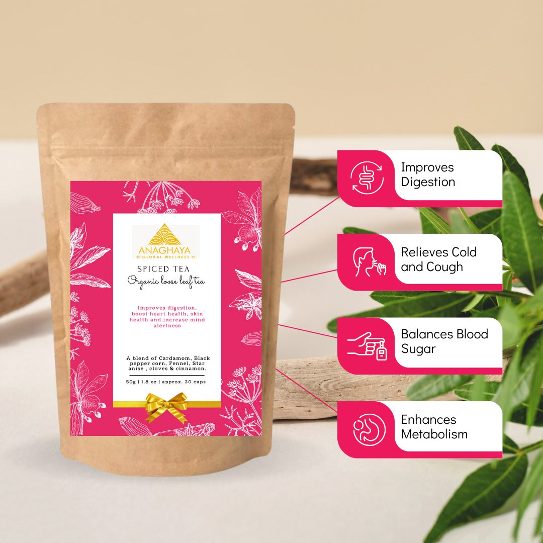 Our Spice Tea is a blend of authentic spices of India. Made with a mix of cardamom, black pepper corn, fennel, star anise, cloves, & cinnamon, this powerful blend is packed with benefits. The warm & spicy flavour is the ideal fuel to either kick start your mornings.